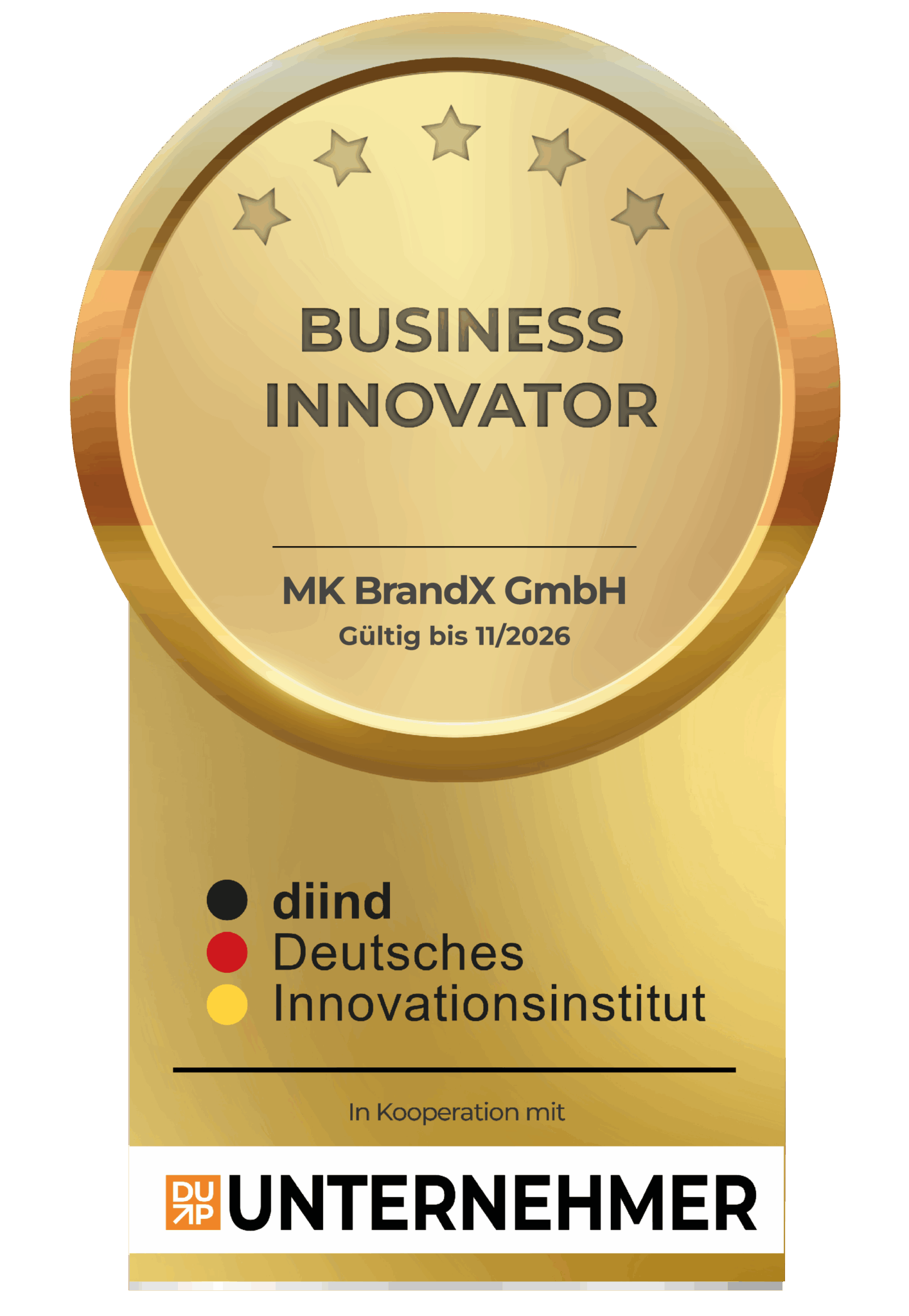 Die MK BrandX freut sich über die Auszeichnung vom Deutschen Innovationsinstitut als „Business Innovator“.